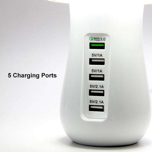 Multiple USB Phone Charger Mushroom Night Lamp Charging 5 Ports Station Stand Dock QC 3.0 Quick Charger for Mobile Tablet