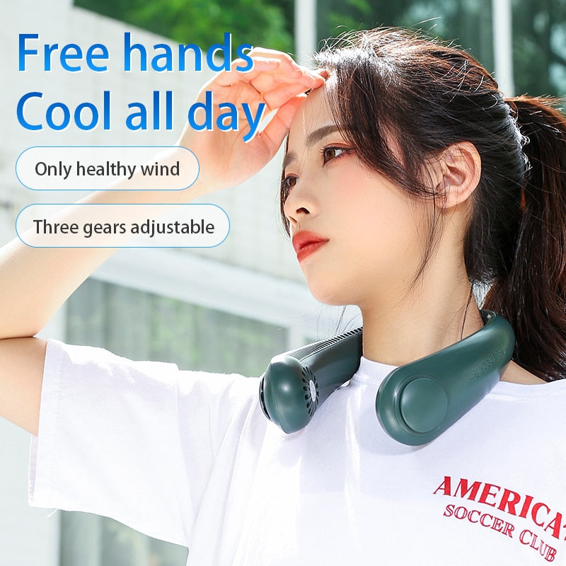 Mini Bladeless Fan Neck Fan 4000mAh USB Rechargeable Fan Mute Sports Fans for Home Outdoor
